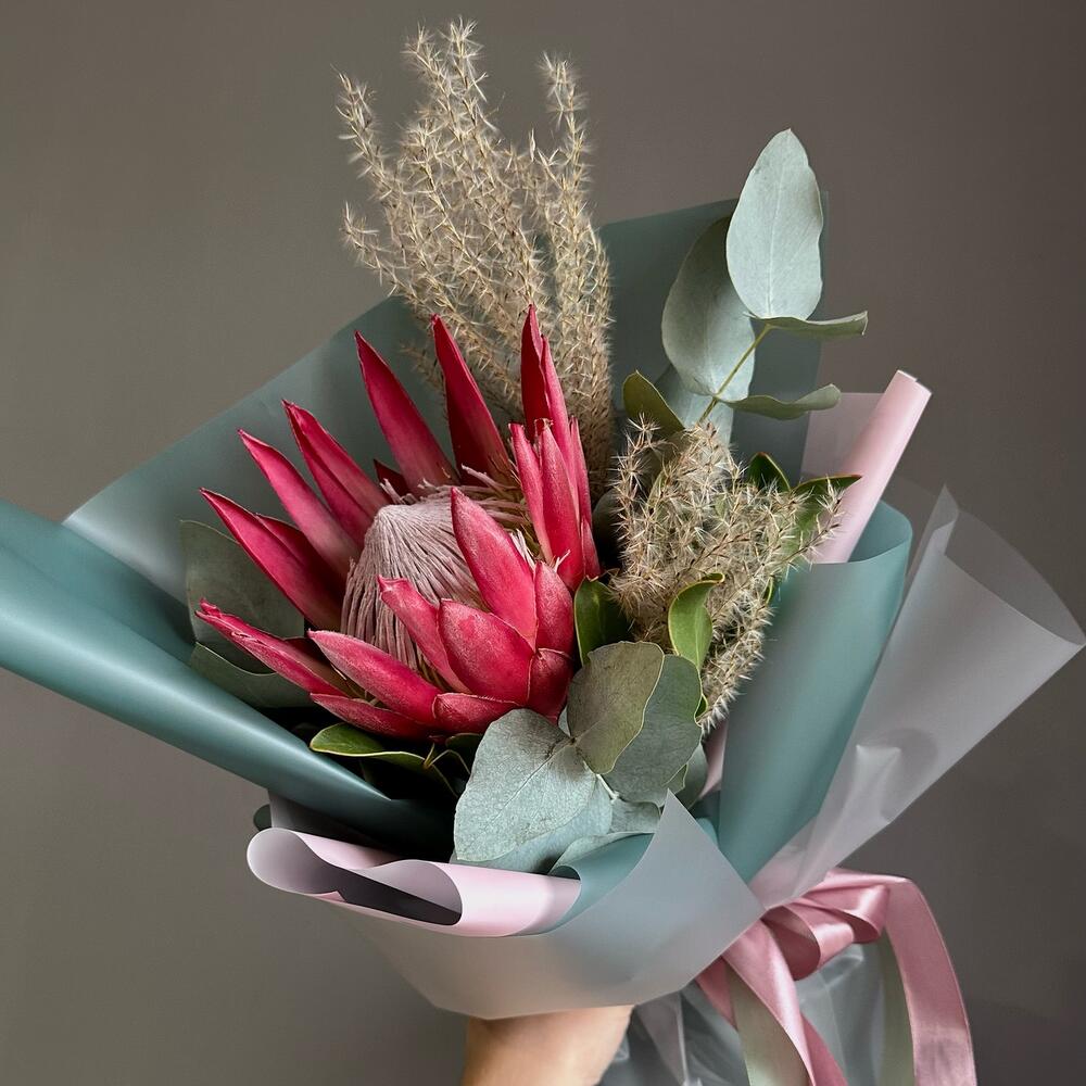 Букет из протеи с эвкалиптом и мискантусом