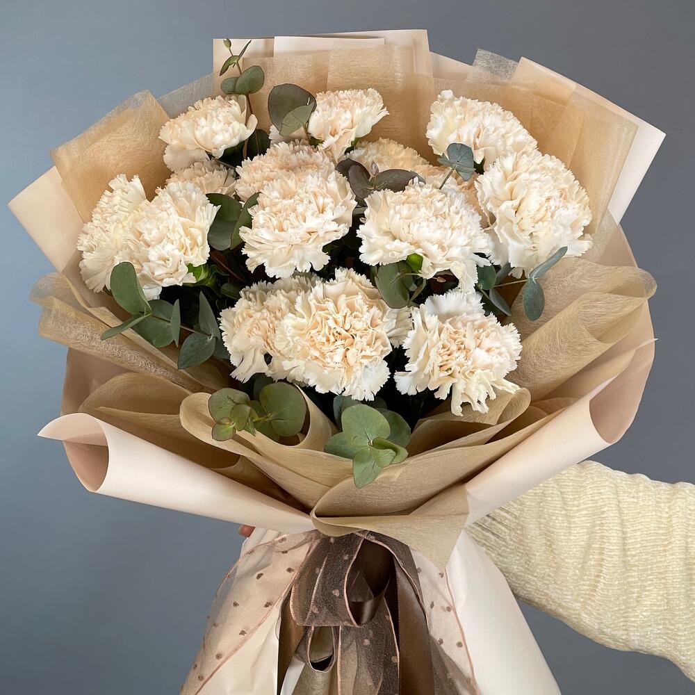 Букет с молочной гвоздикой «Взбитые сливки»