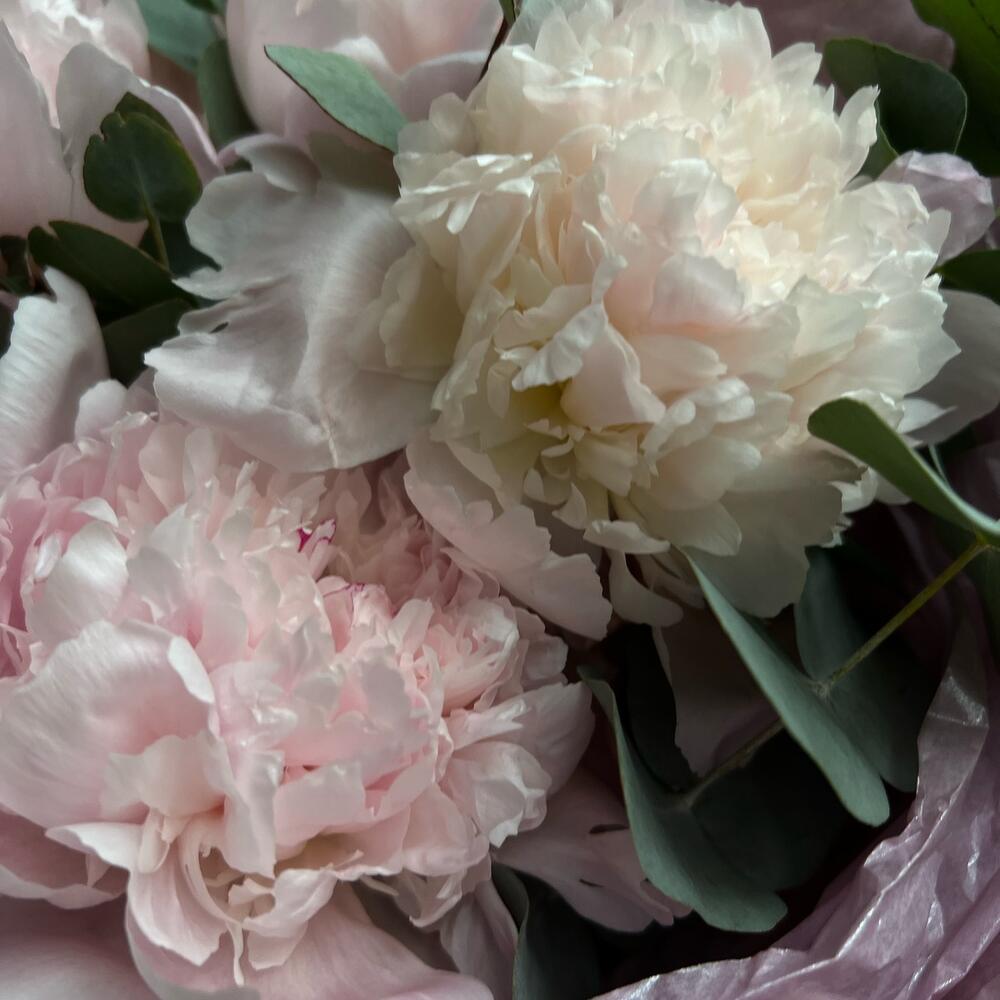 Букет из нежных пионов и эвкалипта