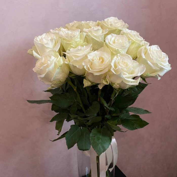 белая одноголовая роза mia star – 15 шт.Атласная лента – 1 шт.