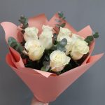 Роза mondial – 9 шт.Эвкалипт – 5 шт.Упаковка дизайнерская – 2 шт.