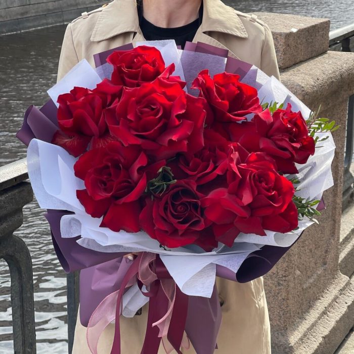 Букет алых роз Вишневый поцелуй M
