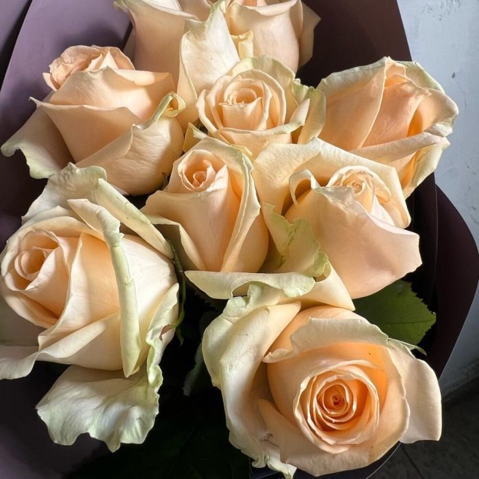 Роза одноголовая – 9 шт.Упаковка дизайнерская – 2 шт.Лента атласная – 2 шт.