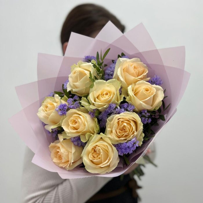 Статица – 2 шт.Роза – 9 шт.Упаковка дизайнерская – 1 шт.