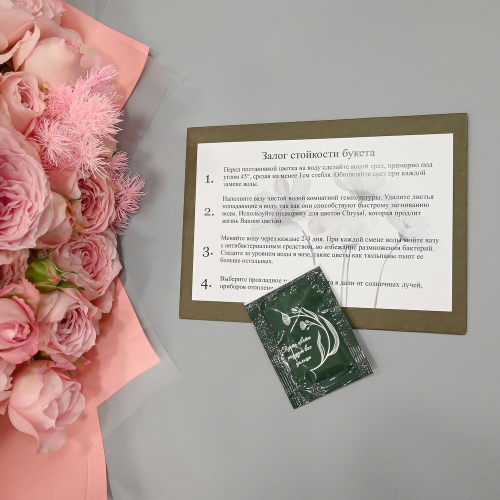 Роза кустовая пионовидная – 7 шт.аспарагус стабилизированный – 2 шт.Упаковка дизайнерская – 2 шт.