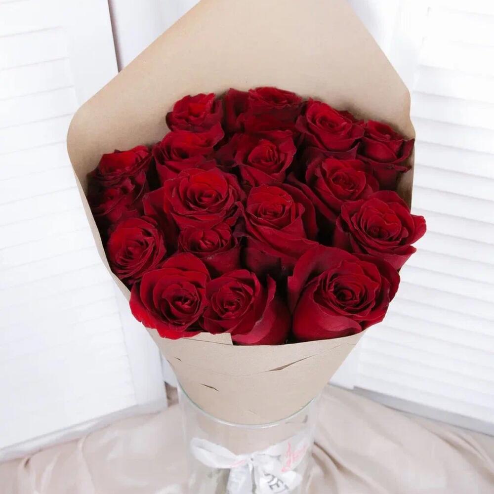 розы explorer – 19 шт.Крафт упаковка – 1 шт.Лента атласная – 1 шт.