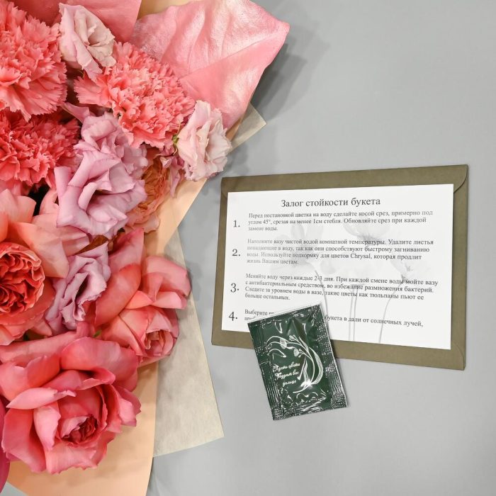 - Сроки возврата: Претензии по качеству букета принимаются в течение 24 часов с момента его получения.