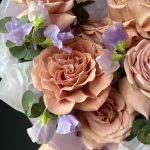 Букет с пионовидной розой, матиолой и гвоздикой