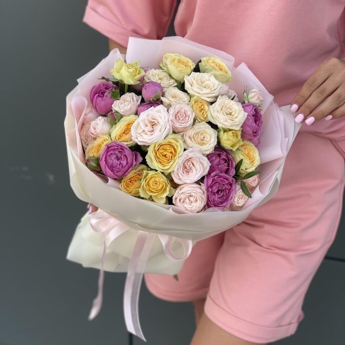 Сборный букет из микса кустовых роз в оформлении!
