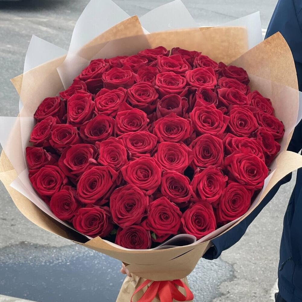 розы эквадор (60 см) – 51 шт.Лента – 1 шт.Крафт упаковка – 2 шт.