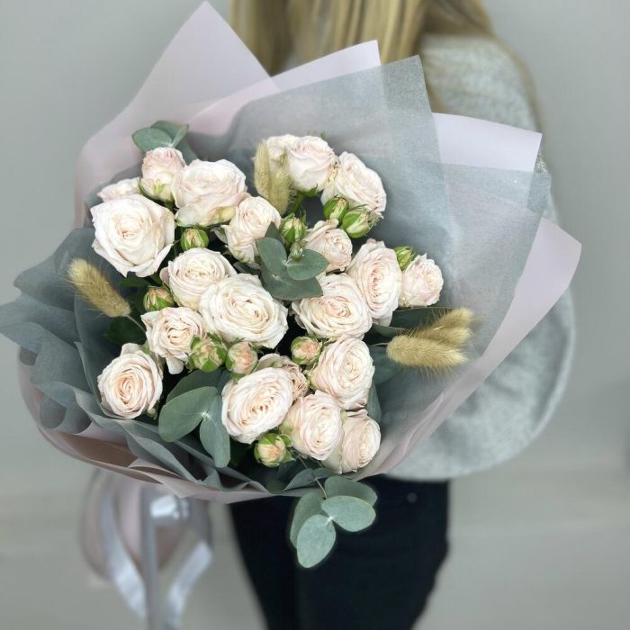 Ванильный капучино букет из пион видных роз
